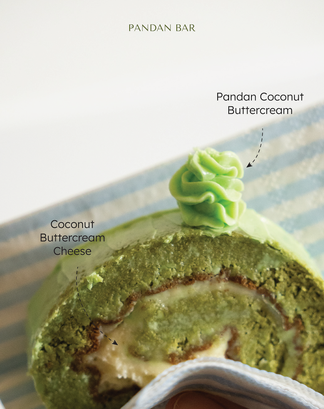 Light pandan sponge rolled with creamy cheese buttercream. Soft, fragrant, and tasty
